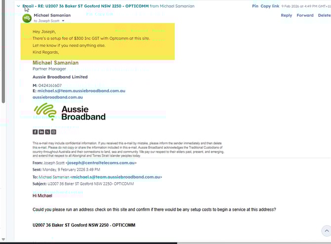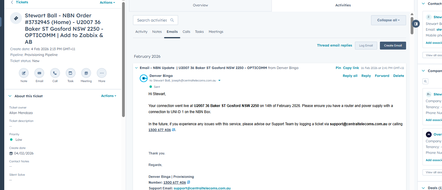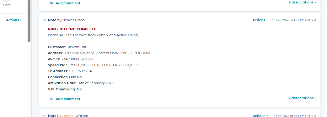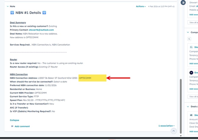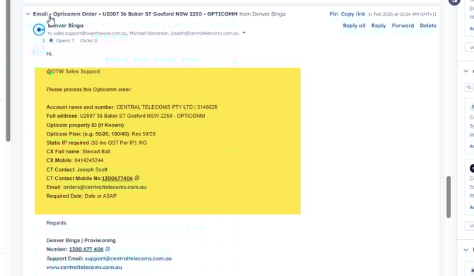 Use the snippet: Provisioning – NBN – Opticomm Order.