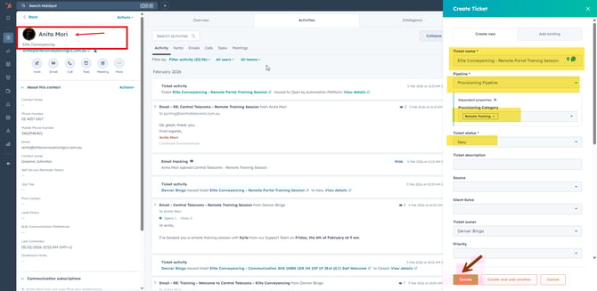 2. Create a Ticket in HubSpot